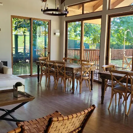 O aeroporto de Pucon fica a 10 km da propriedade. Os visitantes podem mergulhar em piscina ao ar livre.